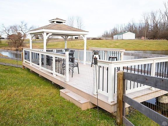 Light an bright throughout with amazing views of the countryside,this 5 acre mini horse farm is located just 5 miles from the Caesar Creek horse trails an 2 miles from the boat ramp! This property will impress! Updates and amenities include: 36x80 barn-3 stalls- new water hydrant- 100 amp electric-separate pastures,fully stocked pond(new aeration system and drain)30x12 dock with electric-composite decking and pavilion,new board fencing(child proof) around backyard fully enclosed chicken coop with outdoor run,new heat pump and air handler,new kitchen flooring-granite counter tops-stainless GE Profile appliances, all new 30 yr carpet with upgraded pad,new insulated garage door and opener and more!! This 2 story shows beautifully has an open floor plan, great storage, wood burning fireplace, covered porch in front and in rear overlooking pond, all of this and in such a great location!