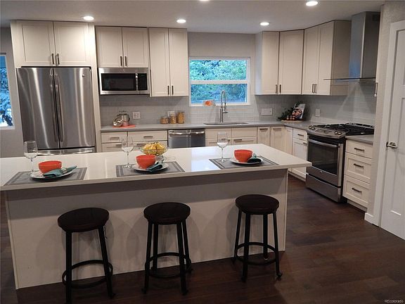 Award winning Cherry Creek Schools*Professional Designed and Updated Sanford 4-level in highly desirable Homestead In The Willows*4 bed 3.5 Bath property well situated for entertaining has a completely open main level+covered patios in the front and back*Mature trees+hillside location+fenced in yard make this a very private setting for formal Gatherings and BBQ's. New exterior and interior paint*Newer A/C, Furnace and Roof*Open concept kitchen*Updated tile bathrooms*New Vanities*New windows. Stacked tiles around new converted gas fireplace. Modern Stainless steel railing provides open feel from Main level living to lower level family room. 95% finished basement with 2 egress windows, bedroom, living space and bonus media or craft area. Large 15X20 Master bedroom boasts private updated 4-piece bath. Walking trails, open space, 3 swimming pools+8 tennis courts are part of HOA. Quiet street with 130 of frontage. What more can you ask for?