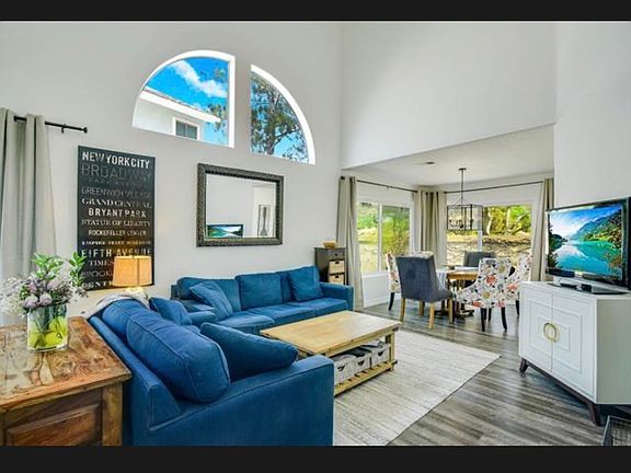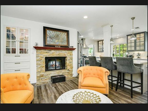 This stunning 3-bedroom, 2.5-bath home has been thoughtfully upgraded throughout, featuring a warm and inviting floor plan perfect for entertaining. The spacious living room boasts vaulted ceilings and a cozy dual-sided fireplace, seamlessly connecting to the adjacent family room and Outdoor patio with TV hook up and close proximity to a community pool and park. The open-concept kitchen is a chef's dream, complete with quartz countertops, a large center island, a wine refrigerator, and ample storage. The inviting family room, located just off the kitchen, offers a cozy ambiance with its shared fireplace. The expansive primary suite serves as a true retreat, featuring vaulted ceilings, a warming fireplace, and a private spa-like bath with a soaking tub, tiled shower, and dual sinks. Step outside to a beautifully designed wraparound yard, an entertainer's paradise with plenty of outdoor space, including a covered patio with a ceiling fan, a bar area, and over 1,800 square feet of stamped concrete. Additional highlights include a freshly painted interior and a newly installed air conditioning and heating system for year-round comfort. Located in the highly desirable Brookfield community, residents enjoy a vibrant neighborhood known for its holiday celebrations, block parties, egg hunts, and 4th of July parade. The community also offers fantastic amenities, including a pool, spa, BBQ area, and tot lot. Conveniently situated near shopping, dining, top-rated schools, and transportation, this home is a must-see! Non smoking home, available May 1,2025. Tenants pay for all utilities and must have renters' insurance. Landlord will provide landscaper monthly.