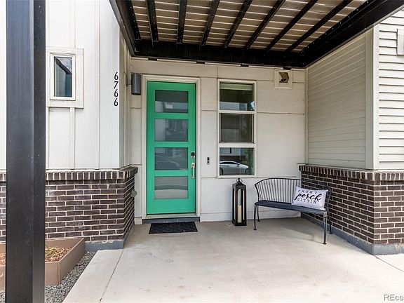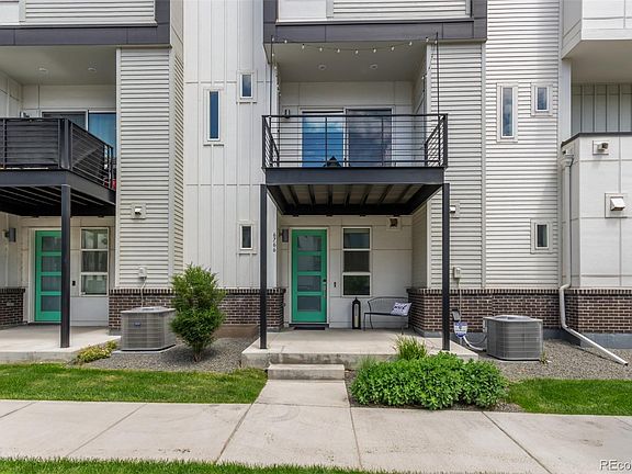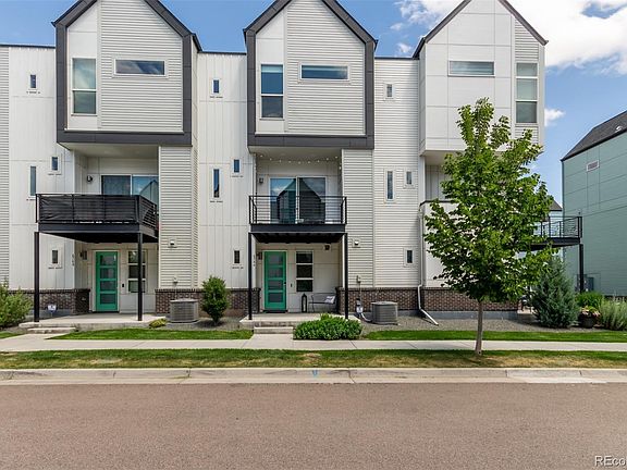 Discover a stunning, nearly-new townhome in the highly desirable Midtown Development—perfect for those craving modern living with unbeatable access to downtown Denver. Just minutes from the light rail, this home offers an effortless commute while boasting an array of community perks. Featuring 3 bedrooms, 3 bathrooms, and a 2-car garage, this home is designed for comfort and style. Relax on the charming front porch or enjoy the welcoming main level with a practical mudroom and a convenient half bath to keep your entry space tidy and inviting. The second level is the heart of the home, offering a bright and open layout ideal for entertaining or simply unwinding. A gourmet kitchen with quartz countertops, sleek stainless steel appliances, and 42" cabinets anchors the space, while large windows and a sliding door fill the room with light and provide access to a spacious deck. The adjacent dining and living areas ensure seamless flow and functionality. Upstairs, retreat to the tranquil primary suite featuring soaring ceilings, oversized windows, and a chic barn door leading to the walk-in closet. The ensuite bathroom includes dual vanities and an oversized shower for a spa-like feel. Two additional bedrooms, a convenient upstairs laundry (with washer and dryer included), and sleek modern finishes complete this level. Extra touches such as LED lighting, central A/C, and neutral tones allow you to make this house your own. The Midtown community shines with exceptional amenities, including a dog park, party room, community center, daycare, picnic area, and the Clear Creek bike trail—all within reach of this meticulously maintained home. Don’t miss the opportunity to call this light-filled, contemporary townhome your own. Buyer to verify square footage.