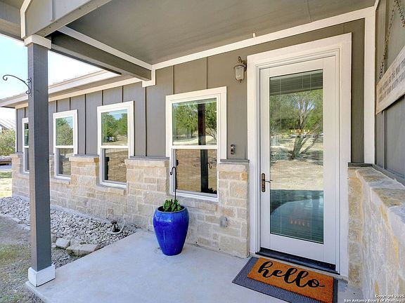 One-of-a-Kind Hill Country Retreat! Discover this hidden gem on over half an acre in the desirable Spring Branch/Bulverde area, just minutes from Hwy 281. This contemporary 3-bedroom, 2-bath home offers a turnkey retreat with furnishings negotiable for a seamless move-in. Step inside to beautifully stained concrete floors and an expansive open layout anchored by an oversized granite island, perfect for entertaining. The spacious living room and kitchen seamlessly connect to a private backyard oasis. Relax on the patio overlooking the wooded greenbelt, complete with a sleek hydraulic awning that extends shade at the touch of a button. Neighborhood amenities elevate the lifestyle, featuring three private parks with access to the Guadalupe River, swimming pool, sports courts, trails, and more; All for less than $300 per year. Highlights include: River Park: A six-acre park with 1/4-mile of Guadalupe River frontage, picnic areas, BBQ grills, and restrooms. Community Park (walking distance): Pavilion for gatherings, playground, soccer fields, tennis courts, and basketball hoops.