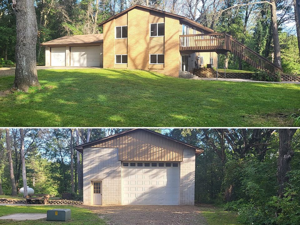 Beautifully updated 4BR/2BA home on nearly 8 wooded acres with over 2,400 finished sq ft. Features include a spacious kitchen, dining & living areas, large lower-level family room, and walkout deck overlooking the private property. Enjoy a 3-stall attached garage plus a 30x50 pole building with workshop and 20 foot side walls, and a peaceful country setting just minutes from Town.