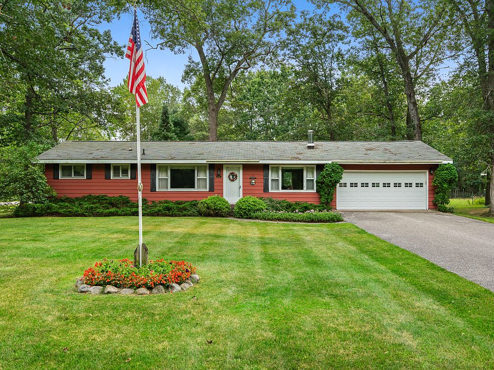 This neat and tidy home offers just over 1200 sq ft of finished living space and an inviting open floor plan. With a cozy wood stove and a full basement, this 3 bedroom home is an ideal place to call home. The property includes a spacious lot with a back deck, a 500 sq ft shed, well-maintained gardens, and attractive landscaping. Its prime location is a real highlight: nestled just up the hill from the Sturgeon River, it's about 1/2 mile from extensive state land, a short bike ride to Cooperation Park, and under 2 miles from Burt Lake State Park.