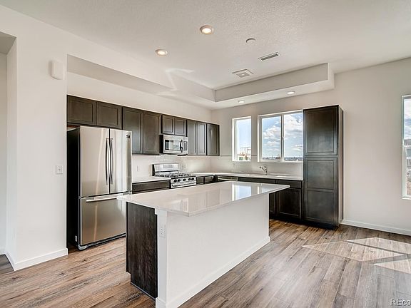 This beautiful Cadence 2 floorplan boasts 3 bedrooms with 2.5 baths. The main floor living is large and inviting with it's 10' tall ceilings and functional layout. You'll get the extra light we all crave while not losing any privacy inside. Views from the balcony towards Denver are just an extra perk of this excellent home. With dark brown cabinets and the warm color scheme of the Finishes, your interior will really pop. Photos are a representation of this plan and not of actual home.