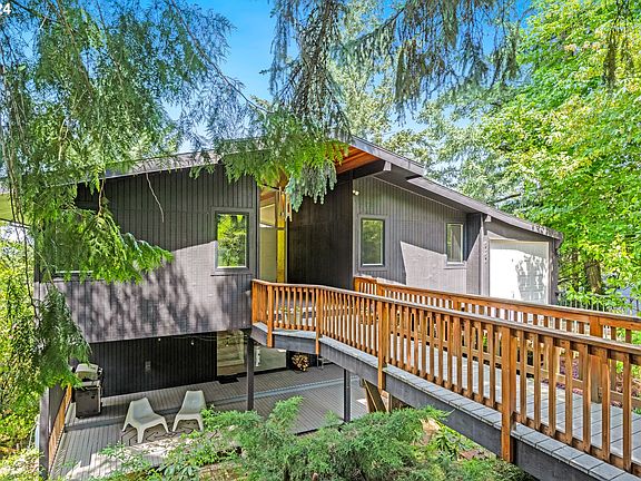Best of 1960's midcentury modern architecture meets modern form + function. Tucked into the trees on the north side of beloved Mt Tabor, this home epitomizes indoor-outdoor connection. Stately double doors introduce the treehouse vibes immediately, with huge windows beckoning your view through the super cool atrium all the way to Mt St Helens. Outdoor spaces abound, including a spacious covered patio (perfect for dining and grilling in Portland's often-mercurial weather) and decks on both upper levels. A mostly level oversized backyard rounds out the offerings, a much-desired rarity for any Portland home with a view. Lovingly maintained and thoughtfully updated with style and quality, this atomic-era marvel was given a reboot in 2017 that was featured in Dwell Magazine and the Oregonian. High end fundamentals like new windows, furnace, plumbing and electrical were completed as well as a thorough cosmetic overhaul including kitchen and bathrooms by local maker Spacecraft. Upstairs bedrooms and main living room capture gorgeous morning light. Down a set of bright stairs, you?ll find the cozy open plan family room complete with wood stove for those cold winter months, airy dining room with adjacent deck, and stylish and efficient gourmet kitchen, all with big windows looking out into the trees and backyard. Lower level with separate entrance is fitted out with a high-quality murphy bed opening to spacious living room, a spa-like full bathroom with deep soaking tub (ooh la la), and den/office/playroom. Substantial soundproofing (originally installed for use as a music studio) makes it the perfect flex space. Think: multi-generational living/guest space, ADU conversion/Airbnb, home office or studio space.Perfectly located within the city to maintain a quiet oasis feel while also having easy access to everything in the city including freeways, public transit, shops, restaurants, and of course the trails, amenities, and City views of beautiful Mt Tabor Park.