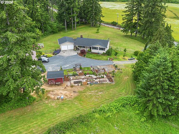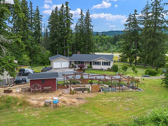 Gorgeous, park-like setting dream home nestled in the serene landscapes of Rainier, OR. This enchanting 2.07 acre property offers a perfect blend of rustic charm and modern comforts, providing an idyllic retreat for those seeking peace and tranquility. Features 5 beds/3 baths, 2514 sqft of living space, plenty of rooms with tons of natural light providing warm ambience and an ample space for relaxation & entertainment. The open floor plan seamlessly connects the living room, dining area & kitchen, creating an inviting atmosphere. The kitchen is a chef's delight, featuring granite countertops, island, large sink, newer SS appliances incl dishwasher, fridge, microwave and plenty of cabinet space. 3 bedrooms on main are generously sized, incl master suite with double closet & en-suite bath. The daylight basement includes a family room with a pellet stove, bonus rooms, 2 bedrooms and laundry room with washer/dryer and storage spaces. The grounds are an outdoor paradise, featuring pristine lush greenery, poultry coop, outbuildings, patio, firepit, fruit trees, raised beds and a deer-protected garden area, providing endless opportunities for outdoor activities. 36x36 Shop/2nd garage has oversized entry, work benches & loft, perfect for DIY projects, storage or a workspace. 2-car attached garage & plenty of room for RV/toy parking. Enjoy breathtaking valley and mountain views. The expansive deck is perfect for relaxation, overlooking lush greenery and rolling hills. Situated in a quiet, rural setting, yet conveniently close to the amenities of Rainier. Easy access to Columbia River Highway. Don't miss this rare opportunity to own a piece of paradise.