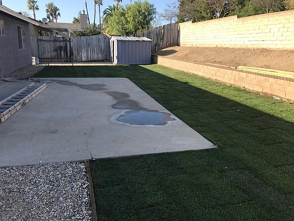 The exterior has newer paint, extra wide concrete driveway with separate RV access and RV parking area. Front and rear yards will have newer sod lawns. Low maintenance landscaping with automatic timed sprinklers. Large fenced in rear yard with uncovered patio, area for garden and storage shed.
