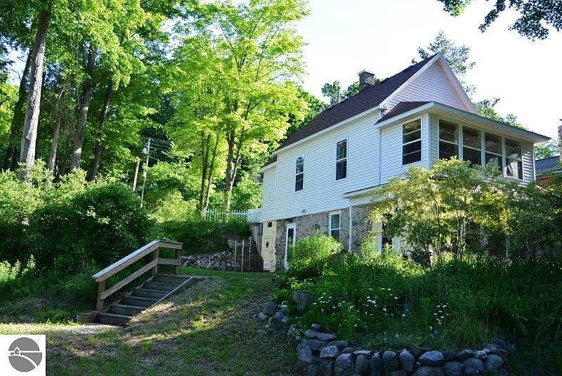 Unique Leelanau county property close to TC & Leelanau TART trail. If you love the sights, sounds & colors of nature here is your enchanting retreat. House, studio & dollhouse shed are surrounded by fragrant flowering shrubs, flowers & trees, all blooming at different times of the year. Light filters through the abundant windows, open floor plan & high ceilings of the home w/ original stone foundation. Gorgeous beech floor, T/G ceiling in living rm. Reading nook under staircase offers solitude looking out to the gardens. Studio offers an inspirational & private get-away, could even be used as old fashioned sleeping quarters. Seasonal views of nearby Lake Leelanau.