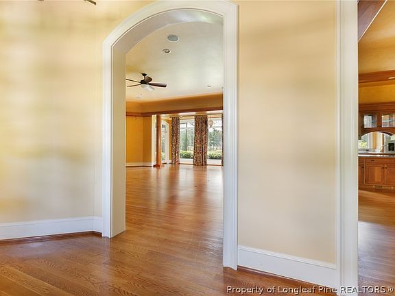 This immaculate 6500 plus sq. foot custom built home sits on a three quarter acre lot overlooking the 17th tee box of the gated Gates Four Country Club. You will fall in love with the gleaming hardwood floors, detailed woodwork and moldings and huge ceilings as you enter foyer. Beautiful kitchen with large windows give you all of the natural light you desire with a great view of the grassy lawn, the golf course, and a pond. The downstairs owners suite is something to dream about! A large bedroom with access to the outdoor covered patio. Large bathroom with seperate vanity areas and his and her custom walk in closets. An amazing tiled shower plus jetted tub. Next to the owners suite is a large office with fireplace, custom knotty pine woodwork, and a coffered ceiling. Three more beds plus a bonus room upstairs. Gates Four Country Club has one of the finest golf courses in the county, tennis, a wonderful pool, and clubhouse with dining.