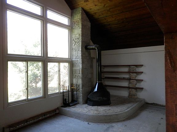 John Knudsen's former studio/retreat. Estate property just a short walk from the Warren Woods State Forest. 2 Bedrooms, 2 baths and a loft. Plenty of open yard space in front and large fenced area in back for out door enjoyment. One of a kind raised fireplace platform and sculpted chimney. Low maintenance vinyl siding. Roof replaced 6 yrs ago. City water, natural gas forced air furnace with central air. Quite a lot to work with for someone who is willing to finish off the interior flooring.