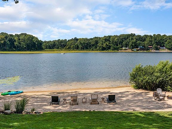 Looking for a peaceful, turnkey lakefront retreat with modern conveniences? This one-of-a-kind, fully rebuilt four-season waterfront home on the private, spring-fed Minnewaukan Lake in southwest Michigan offers the perfect escape. Ideally located just 2.5 hours from Chicago and less than 3 miles from the charming, historic downtown Sturgis, this property combines tranquility with accessibility. Set on a beautifully landscaped and mature.3 acre lot, the home features 75 feet of private sandy beach and a separate, fully insulated four-season bunkhouse — a rare and valuable addition. Surrounded by lush perennial gardens and mature trees, the grounds are as inviting as the home itself. The small, quiet subdivision is just minutes from shopping, dining, and all the conveniences of town. The main residence was completely taken down to the studs and reimagined with a thoughtfully expanded floor plan and top-of-the-line materials throughout. For a comprehensive overview, please refer to the attached list of upgrades and improvements. This property is truly a rare gem — a “unicorn” among lakefront homes — and must be seen to be fully appreciated.