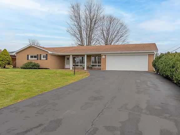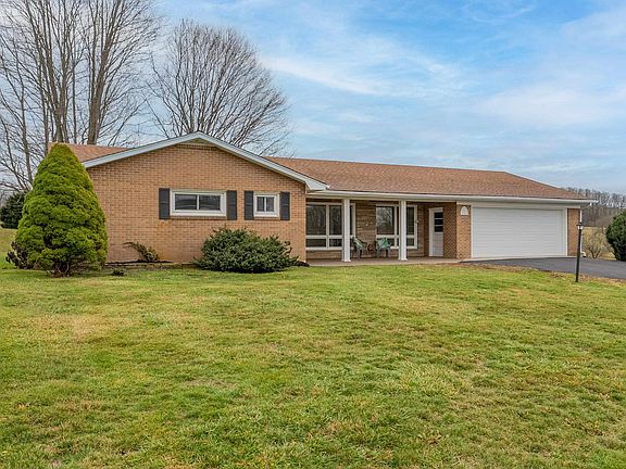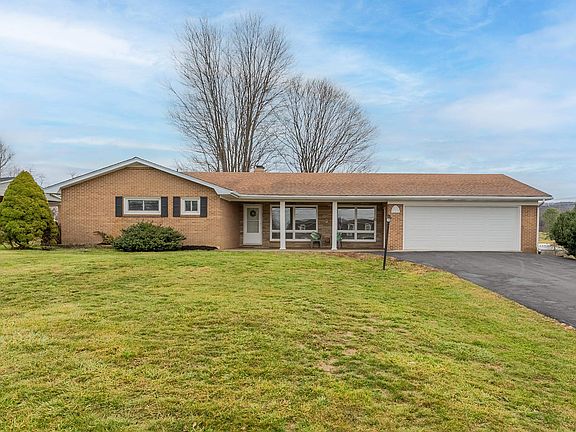 As you approach the front door, you'll be greeted by a large, covered porch—perfect for enjoying outdoor living. Inside, this spacious, one-level brick home offers a blend of comfort and style, featuring 5 bedrooms, including three on the main floor and two additional non-conforming bedrooms in the mostly finished basement. The primary bedroom boasts a private ensuite and a generous, cedar-lined walk-in closet. You'll find three distinct living areas, two of which feature beautiful masonry fireplaces, with one plumbed for gas logs. Freshly updated with new flooring and paint throughout, this home radiates a clean, welcoming ambiance. Recent improvements include new kitchen countertops, a refreshed primary bathroom vanity, and a new toilet. The home is efficiently heated with two heat pumps, ensuring comfort year-round. Step outside to experience breathtaking mountain views. The outdoor spaces, combined with the many thoughtful upgrades inside, make this property a true standout.