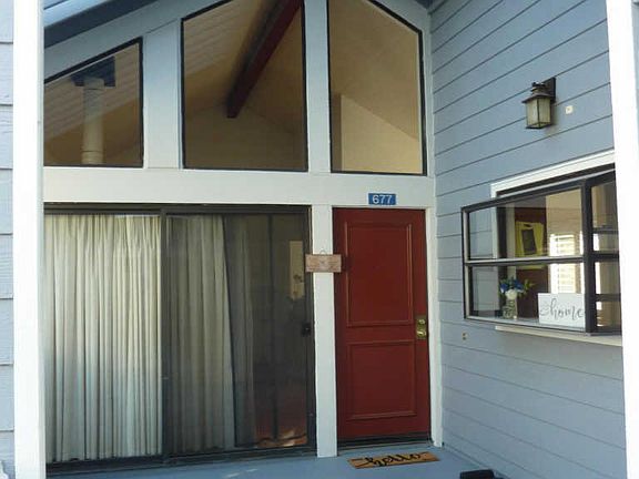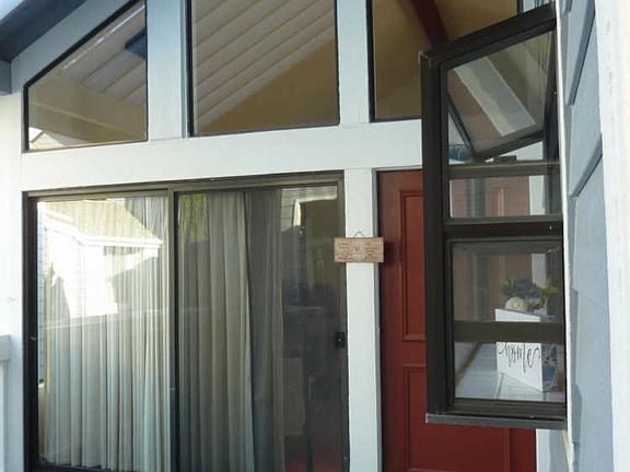 Spacious, 14’ vaulted ceilings throughout. 10’x8’ patio with hours of morning sun. Unit has no one above or below. Only one wall is shared. Amazing creek running through complex with bridges, Koi fish, and ducks.