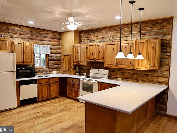 Check out this quiet 3BD/1BA log home on a flat 2.2 AC wooded lot. Home is within an HOA with private road, where AirBnB is permitted. 2 sheds (1 finished with conveying fridge). New roof added on all structures in 2019. Lot abuts GWNF and has High Speed Fiber Optic available. Original hardwood floors throughout with live edge wood stairs to Living Room area where there is a Stone wood burning fire place also accented with a live edge wood mantel. Beautiful cathedral wood ceilings in Livingroom. Skylight in Dining/Kitchen area adding great natural light. Central heat and air with propane back up. Located conveniently 10 min from the town of Wardensville with shopping and dining. 5 min from the Wardensville Town Park. 30 min to Winchester, VA. Less than 2 hours from Washington, DC area. Make an appointment today!