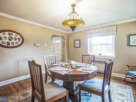 Welcome to this extraordinary stone home in the highly sought-after Twickenham Village of Glenside! From the moment you arrive, its timeless charm captivates, starting with the Moravian Tile Medallion embedded in the stone façade. Inside, gleaming hardwood floors and elegant archways lead to the sun-drenched living room, featuring a wood-burning fireplace with a handmade tile surround, a grand picture window, deep-set windowsills, and a side door to the serene backyard. The formal dining room exudes classic sophistication with crown molding and deep windowsills. Adjacent is a chef’s dream kitchen with granite countertops, a subway tile backsplash, stainless steel appliances, a five-burner gas cooktop with a pasta pot filler, and custom walnut cabinetry with thoughtful accessories. Recessed and pendant lighting complete this beautifully updated space. Perhaps the most breathtaking feature is the stunning family room addition. A full stone accent wall, soaring cathedral ceiling with exposed beams, and a large window offering picturesque backyard views create an inviting ambiance. French doors and side panels flood the space with natural light, and a convenient powder room completes the main level. Upstairs, three spacious bedrooms and two full baths await. The luxurious primary suite boasts a spa-like en-suite bath with his-and-her sinks, a heated tile floor, a soaking tub, a stall shower, and a generous walk-in closet. The second bedroom easily fits a king-sized bed, while the third—currently a home office—offers versatility. The full basement provides endless possibilities for a home gym, recreation room, or storage, with a dedicated laundry area for convenience. Outside, an expansive hand-built flagstone patio with a firepit sets the stage for outdoor gatherings, while the large, level backyard offers space for play or gardening. Additional amenities include a one-car attached garage, accessible attic for additional storage and a garden/wood shed. Meticulously maintained, the home features recent upgrades like a newer roof, siding, gutters, downspouts, flagstone patio, and an updated basement. Nestled in a vibrant community, Twickenham Village is known for its Fourth of July celebrations, garage sales, and festive events. Walk to the Glenside Train Station, shops, and restaurants, with Keswick Village, the township library, community pool, ballfields, Chestnut Hill, and the PA Turnpike just a short drive away.