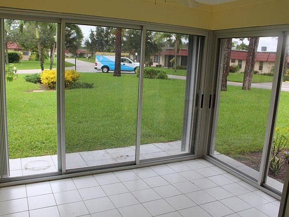 TOTALLY REMODELED CORNER VILLA.BATHROOMS AND KITCHEN REDONE with new cabinets and carrion counter tops, IMPACT WINDOWS, NEW INSTANT HOT WATER HEATER,NEW WASHER/DRYER CERAMIC TILE THROUGHOUT EXCEPT FOR WOOD LAMINATE IN MASTER BEDROOM, EXTRA CLOSET HAS BEEN ADDED TO MASTER BEDROOM, GLASS SLIDER SUN ROOM WITH ACCORDION SHUTTERS. CAN HAVE 1 DOG UP TO 22 LBS IN THIS 55+ COMMUNITY.
