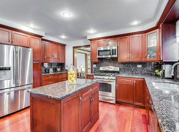 Charming contemporary corner lot home features 4 bedrooms, 3.5 baths, 2 story foyer, oak staircase and hardwood floors throughout. Gorgeous open kitchen, great for entertaining, features cherry cabinets, granite counter tops, granite backsplash, stainless steel appliances and breakfast area which is connected to open family room with beautiful accent wall, and cozy brick fireplace. Beautiful master bedroom has vaulted ceilings and a bright master bath with skylight over whirlpool and double sink. Finished basement has 2 bonus rooms, family room with kitchenette, bathroom and extra storage room. Patio deck leads to huge 20x40 heated underground pool with diving board, brand new liner (20 year warranty) Seller had pool fence removed but can easily be reinstalled, great for FUN summer days. 2 Car garage Property comes with Buyers Home warranty!