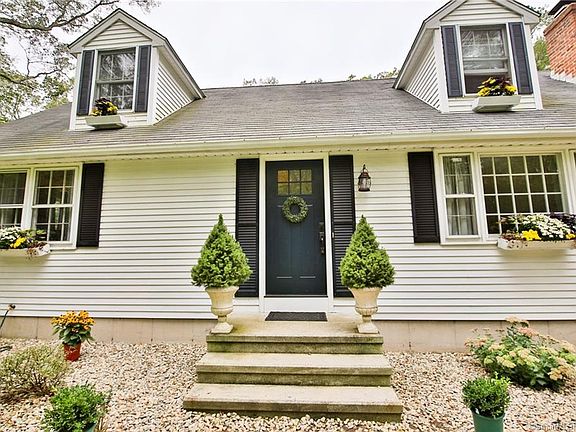 Charming 3 bedroom, 2 full bathroom Cape on vast 1.16 acre level lot. Lovely layout, great for entertaining or enjoying time with the family. Brand new bathrooms, completely remodeled with custom cabinetry, marble vanity and tile floors. Cozy living room with brick fireplace that opens into a sunny dining area. Sliders lead you out to a massive Trex deck where you can enjoy your morning coffee or relax and unwind after a long day. Attractive family room with custom built-ins. Bright & Airy kitchen with access to oversized two car garage. Spacious bedroom on the main floor, perfect as a master or office. Two sizable bedrooms on the second floor with a full bathroom. Large renovated finished basement. Hardwood floors throughout. Newer boiler, hot water tank, well pump and more. A sweet home in a very private and peaceful setting.