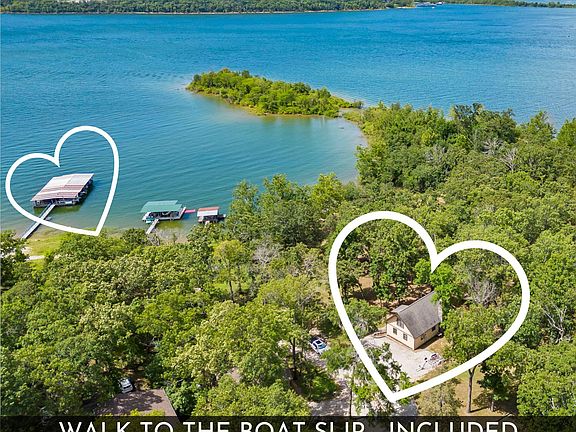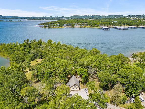 180 degree water views, 'pancake flat' water frontage, turnkey furnished with a private peninsula to enjoy all to yourself! Life couldn't get more romantical @ 'The Point' on Othello Lane Table Rock Lake! Finally the end of your tiring search for that perfect Table Rock lakefront lake view home that will check all your boxes & then some. Fall in love with #tablerocklake at this over 1/2 acre +/-, w/10x20 slip included(extension to 12x28 in process), Nitro CDX 929 w/225 Mercury included (new batteries), Scag Wildcat zero turn w/leaf attachment included, & all furniture, dishes, linens included! There's even an extra fridge & washer/dryer that you could easily install in the garage included. Here at Othello Lane, you will have the quickest access to the water from Springfield off Gobblers Mountain Road & enjoy one meticulously maintained chalet style lake house featuring: three spacious bedrooms, two bathrooms, soaring vaulted wood beamed ceilings w/floor to ceiling windows flooding in loads of natural light complete w/electric blinds (after you are done enjoying the sunset), custom cabinetry in the kitchen, granite, stainless, hard wood flooring, wood burning fireplace, detached garage, & two lots (room to add on or build a shop). The highlight to the home is, hands down, the expansive deck space & super flat yard w/active clearing permit for the ultimate space for bon fires, picnics, hammocks & yard games & the best 180 degree lake views of #tablerocklake that money can buy! Conveniently located w/in walking distance of your 10x20 boat slip with swim deck for super quick water access. Only 5 min. to Branson West & 30 min. to Branson for all the shopping, restaurants, entertainment, amusement parks, & more. By water: Just across from Port of Kimberling Marina gas dock, rentals & more, a short boat ride to Pier 28, Sharkys Pizza, & Lakeside Restaurant @ Coney Island. Get to 'The Point' & start creating the lakefront storybook memories@Othello Lane #tablerocklake