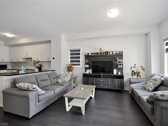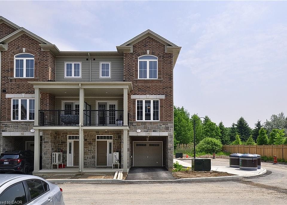 Welcome to this Beautiful Brantwood Village Three Story Townhouse End Unit in the Heart of Brantford. This Modern perfect townhouse. The Green Brier Model boasts 1498 Sq.ft of luxurious living space with 3 bedrooms, 3 bathrooms, main floor balcony, The Spacious main floor features a spacious great room, a dining area and large upgraded Kitchen with Black pearl granite countertop, backsplash, water line rough in, white glossy Cabinet & Laminate flooring on main floor. Upper Level you can find master bedroom with 4 Piece full bath and 2 additional bedroom with common washroom. Upper level laundry. Located in Brantford desirable north end near by all amenities Parks, Walmart, place of worship, Lynden park mall, Costco, Wayne Gretzky Community Centers, and Just Step away from HWY 403 & More. Ready to Move in!