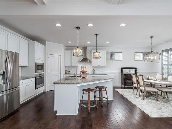 - Kitchen Features: Eat-in Kitchen, Pantry, View to Family Room, Stone Counters, Kitchen Island, Cabinets White