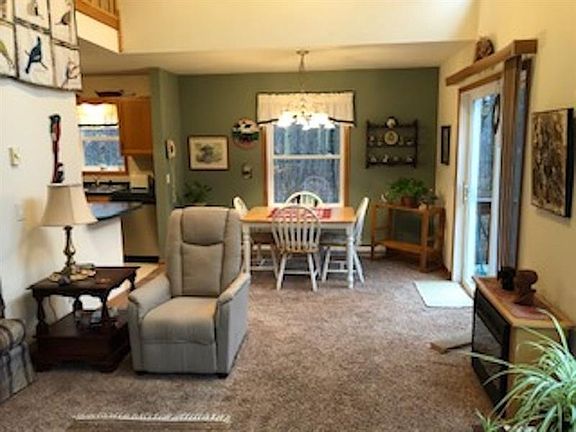 You'll find this delightful 1 1/2 story lake home nestled on 2 lots! Step into the naturally illuminated living/dining rooms complete with cathedral ceiling. Walk out to the deck to grill or enjoy the outdoors. Efficiently prepare meals in the kitchen with all (3 yr. old) appliances included. The spacious master en suite is on the 2nd floor with considerable closet space! There is also a 10x16 loft located off the master bedroom! ONE FLOOR LIVING is possible with laundry (3 yr. old) washer & dryer, 2nd full bath and 2 bedrooms on the main floor! The basement is just waiting for your finishing touch as it too is illuminated by large windows. Enjoy the privacy of this location situated between association owned property! Ride a golf cart or walk to the 297 acre lake to enjoy many of the water sports from water skiing to ice fishing!