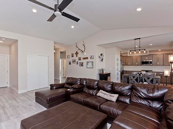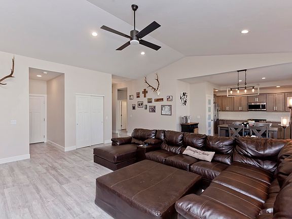 Beautifully built, open concept home with room for everyone! Step inside and be welcomed by the large, open living room and be greeted by the wall length, built-in fireplace. Light and bright kitchen and dining room are combined with more than enough cupboard space and a storage pantry. All kitchen appliances are included. Home has a split bedroom floor plan. Main bedroom has large, walk-thru walk-in closet and a door that goes out to the back, covered patio. Main bathroom has granite tile floors with walk-in shower plus a soaker tub. Three additional bedrooms and a full size bath are located on the north side of the home. Out back you will find a completely fenced back yard with a hot tub, nice size storage shed and room for your RV. Property is completely landscaped.