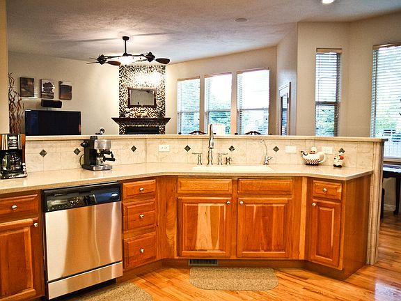 Like-new North ranch. 2625 sf, 4/3/3, high end finishes/split floor plan. Textured walls, 12 ceilings, custom tile/oak hardwood/carpet. Cherry cabinets, stainless appliances, mosaic tile/marble gas fireplace, 2/6 construction, 2 furnace and 2 A/C units, 50 gal water heater, RV parking, oversized shed with electric and roll door, xeriscape front & lush grass back yards, mature landscape w/full sprinkler system. Kitchen/laundry room wired for electric and gas, covered patio gas hook-up, oversized three car garage, home/patio wired for surround sound and/or security system. Corian solid surface counter top & eat-in kitchen. Ceiling fans in all bedrooms, wide hallways, 5-piece master bath w/jetted garden tub and walk-in shower and closet. Roomy bedrooms, warm colors, oil rubbed fixtures, outdoor lighting, wood blinds. Very quiet, well-kept neighborhood near shopping and medical services.