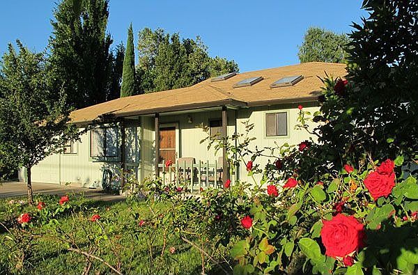 Beautiful, well-maintained home with hardwood flooring in living room, hall and entry way. Laminate flooring in kitchen, ceramic tile flooring in both bathrooms and walk-in closets. Multiple skylights, vaulted ceiling, new kitchen counters, sink, faucet, and new paint. Nice fenced yard off the covered back patio with new landscaped front and rear including espaliered grapes, berries, fig and pear trees. Back yard gate opens up to park-like setting, common area that expands your outdoor play area enormously. Views of Grizzly Peak mountain. Finished 8x10 shed complete with drywall, baseboard heating, lighting and electrical ready to use as art studio, playroom or office. Block from bike path, close to shopping and public transit. Must see!