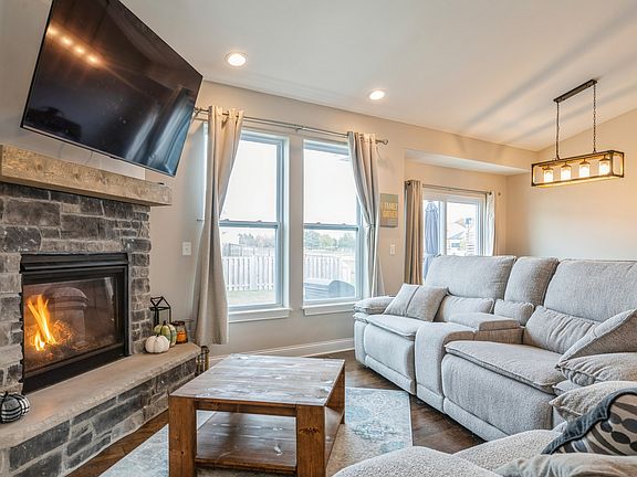 Welcome to your turn key home! A beautifully updated 3 bedroom ranch home with hardwood floors throughout, 42 inch kitchen cabinets, granite counter tops, and stainless steel appliances. A custom designed fireplace, 9 foot ceilings in the full basement waiting for your personal touch. A three car garage with heat. All this is located in the newly developing subdivision Prairie Ridge. This is a must see!