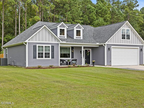 Discover the perfect blend of tranquility and potential in this charming 3-bedroom, 2-bathroom home, nestled on nearly half an acre in the serene yet emerging Winding Creek neighborhood of Rocky Point, North Carolina.Designed for convenient one story living, this fully furnished residence with a FROG boasts an open concept layout, where the spacious living area seamlessly flows into the dining space and kitchen. The LVP flooring throughout adds a touch of elegance and durability, complementing the home's contemporary design. The gourmet kitchen is a must see, featuring sleek granite countertops, a striking red porcelain sink, and top-of-the-line stainless steel appliances. The generous eat-in island provides additional prep space and serves as a focal point for casual dining and entertaining. The master suite is a luxurious retreat, conveniently located on the main floor. It features a spacious walk-in closet and a spa-like en suite bathroom with a beautifully tiled walk in shower and dual sinks, ensuring both comfort and functionality. Step outside and enjoy the private, fenced- in backyard that is an ideal space for relaxation and outdoor enjoyment, complete with a charming back patio and a cozy fire pit for the cool evenings. The attached 2-car garage provides ample space for vehicles, additional storage, or a workshop, adding to the home's versatility and convenience. This meticulous residence is move-in ready, with the added benefit of an adjacent lot available for purchase from a separate seller, providing you with an exceptional opportunity to expand your property and enjoy additional acreage!