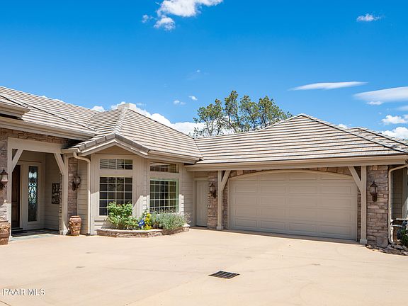 Experience living at its finest by residing in the Hassayampa Village Community behind the main the gate and a short walk to the Capital Canyon clubhouse.Level driveway leads you to this elegant home featuring main level living with long distance panoramic views of the San Francisco Peaks, City Lights, Bradshaw Mountains, Prescott National Forest and the 1st fairway of the Capital Canyon Golf Course.Features include beamed ceilings, 2 gas fireplaces in Great room, chefs kitchen with hardwood floors, pantry and ''WOLF'' appliances. Master Suite features sweeping views, gas FPLC, separate shower and tub and large custom walk-in closet. Lower level features family room, Ensuite and 3rd Bedroom and full bathroom.Front & rear lot is professionally landscaped.Rare 4 car attached garage
