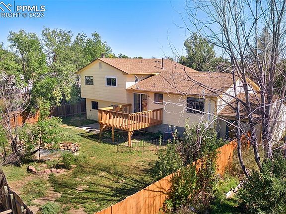 Lovely home with spacious yard and covered front porch. This 3 bedroom, 3 bath, 2 garage home has been updated and is move-in ready! As soon as you walk in you will notice pride in ownership. All flooring in home has been recently replaced with solid surface, high quality luxury vinyl plank. Walls have been freshly painted and baseboards replaced in many of the rooms. Ceilings are finished with skip trowel texture; no popcorn finish! Kitchen is spacious and has a newly installed banister. Many light fixtures have been updated. Upstairs includes primary bedroom with spacious attached bathroom with large closet and 2 additional bedrooms along with an additional updated bathroom. If you are looking for a separate workshop or dedicated private office, on the side of the home you will be delighted to find this desired space; complete with electrical outlets, lighting, and insulation. The lower level of the home has a wood-burning fireplace and sliding doors which walk out to a concrete patio. The modified basement is a perfect area for additional storage as there are 3 separate storage/work rooms. Outside you can enjoy mountain views from the covered porch and the backyard has a large deck. Minutes away from Fort Carson, Powers Corridor, and shopping. Home is close to parks and walking trails. Additional items: complete water filtration/reverse osmosis system, detergent-less cold water laundry system, and radon mitigation system.