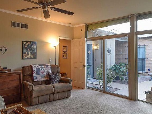 Classic, cozy, and comfortable east side oasis offers you mega-upgrades. Nice, flowing floorplan. Beautiful concrete floors throughout, upgraded kitchen, inviting fireplace, newer windows, newer A/C-heat system, brand new Mastercool evap system, automatic rolling shutters, tankless hot water heater. Very private backyard features a $25,000 swim-spa that conveys! Spa is only six years old. Front entrance features a beautiful, private courtyard. Sellers downsizing. 3% to buyer broker.