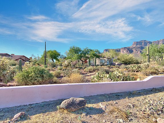 One of the best lots in the subdivision. Custom home backing on the Tonto National Forest and unrestricted view of Superstition Mountain. Only used a few weeks a year, never a rental. 3 Huge bedrooms, 2.5 baths, large eat-in kitchen with the dinette view of mountain. Gigantic Great room and formal dining area. Surround sound incl. patio. Laundry with tub and cabinets. 3 car garage 24 foot deep with built-in cabinets. 2 hot water heaters, 2 A/Cs. Big covered patio surrounded with view fence. All on a 1+ acre lot. Metered water, septic. Seller will provide a 1 year home warranty with acceptable offer. Seller will paint exterior or credit cost to buyer At COE.