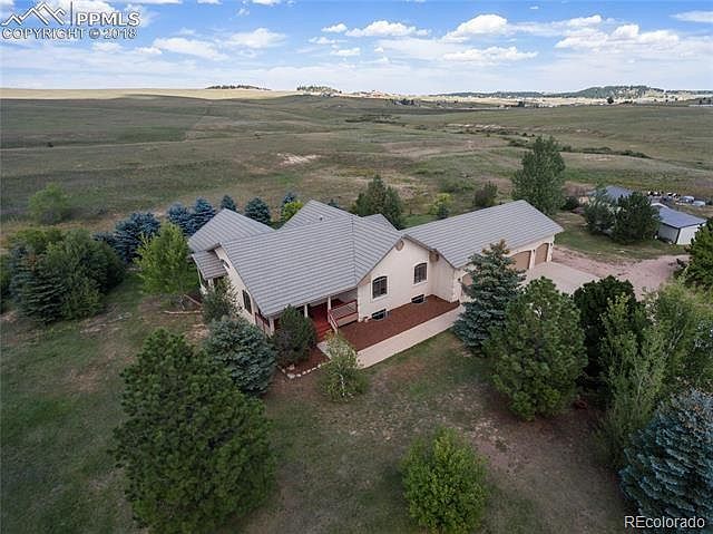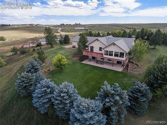 Contact the listing agent Michael Turner at 719-434-0199 or michael@homesbyturner.com High quality concrete tile roof. Attached 50x30 5 car garage finished and insulated. Multiple outdoor entertaining areas including the three season 12x23 sunroom, 52x14 deck, covered front porch, 52x19 walk-out basement patio and built in fire pit area surrounded by large blue spruces. Spacious main level master suite with walk-out to the back deck, walk-in closet, remodeled bath with standalone tub, double vanity with marble counters, separate shower with seamless glass surround and hardwood style tile. Open concept kitchen with island, hardwood floors, recessed lighting, 6 burner downdraft gas range top w/grill, built in wine chiller, pecan cabinetry and Corian counters. Main level office with french doors and hardwood floors. Finished walk-out basement with tons of large windows, huge patio, two large bedrooms, 5-piece bath, game area, family room with wet bar and gas stove. RV and outbuilding friendly.