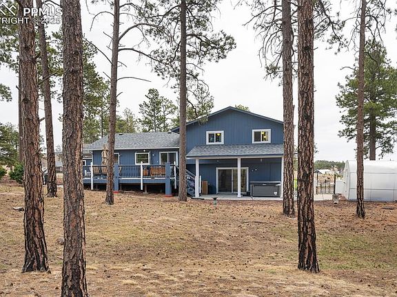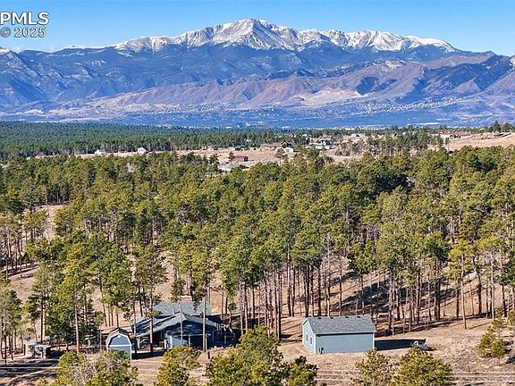 This updated Black Forest home is truly a rare gem! Nestled on a serene, treed 5-acre lot with stunning mountain views and conveniently located near Edith Wolford Elementary, this property strikes the perfect balance of privacy and convenience. The home features a brand-new level 4 impact-resistant roof, fresh exterior paint, and a gorgeous deck, along with three covered patios—perfect for outdoor relaxation and entertaining. The detached garage is insulated, drywalled, and equipped with an air compressor, making it an ideal space for a workshop. Inside, the kitchen has been recently been updated and is a chef's dream. It boasts a massive quartz island, sleek stainless steel appliances, and two single-bowl stainless steel sinks. The kitchen also includes pro-grade 6-burner gas cooktop with a wok attachment, a warming drawer, and will meet all your culinary needs. The cozy family room is centered around a charming wood-burning stove, adding warmth and character to the space. The spacious primary bedroom offers two closets and an ensuite bath for added convenience and privacy. With luxury vinyl plank flooring throughout, several recently repainted rooms, and updated upstairs bathrooms, this home combines modern comforts with rustic charm. Experience Black Forest living at its finest!