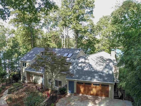 Live the good life from this comfortably modern, updated home w/ year 'round Lake Lanier vistas. You'll love the private, wooded setting in a notable, but intimate Forsyth Co. lakefront neighborhood. Fenced front yard, outdoor shower & dog wash, gentle groomed path to great sgl-slip party dock (+ jet ski ramps & dock storage) in deep water. Entertain your guests from the 3 levels of decks & patios (each w/ stone fp) or keep the master suite sleeping porch to yourself w/ sliding glass wall + remote-controlled screens & shades. Design & functionality meet flawlessly w/ the wide open floor plan, gorgeous hardwoods, subtle architectural details, fabulous fixtures, & wood-burning stove as the heart of the home. Jaw-dropping kitchen update features new Wolf appliances, sleek cabinetry systems & stunning lake views. Tech-enabled home has Tesla charger in garage, smart appliances, audio throughout & AV room.