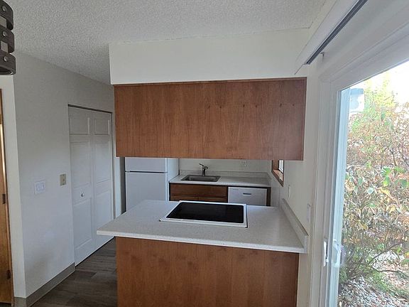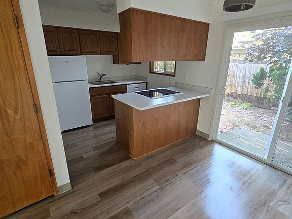 Country Club Terrace is a small 8-unit community next to the Fanno Creek greenway in the Raleigh Hills Garden Home area. It's convenient to both I-5 and Hwy 217, and nearby Scholls Ferry Road makes an easy transit north and south. Nearby parks include Vista Brook Park, Harman Swim Center and Camille Park. Entrance to the Fanno Creek Running Trail is next to the northwest corner of the property. Bus lines 56 and 78 are just within a couple blocks and 53 is just a bit further. The WES Commuter Rail is a little over a mile southwest at SW Hall & Nimbus. There's a nice private green space at the back of the property for tenant enjoyment. Newly available is Apt 1. This 2-level townhome-style end unit has two bedrooms and a full bath on the upper level, and the living room, dining room, kitchen and half bath on the main floor. The kitchen was updated in early 2024 with all new cabinets, counters, flooring, and appliances, including a dishwasher and glass top range. A slider door off the dining area leads to a small private patio and partially fenced back yard. Both bedrooms have large closets. There is also covered parking, on-site laundry facilities with extra tenant storage. Approximately 950 sf. Tenants are responsible for electric and $35 monthly water/sewer billback. Property provides for garbage and landscape service. Your well-behaved small dog or cat welcome with additional $35 monthly pet rent. Available for move in late August. Schools: Raleigh Hills Elementary, Whitford Middle and Beaverton High.