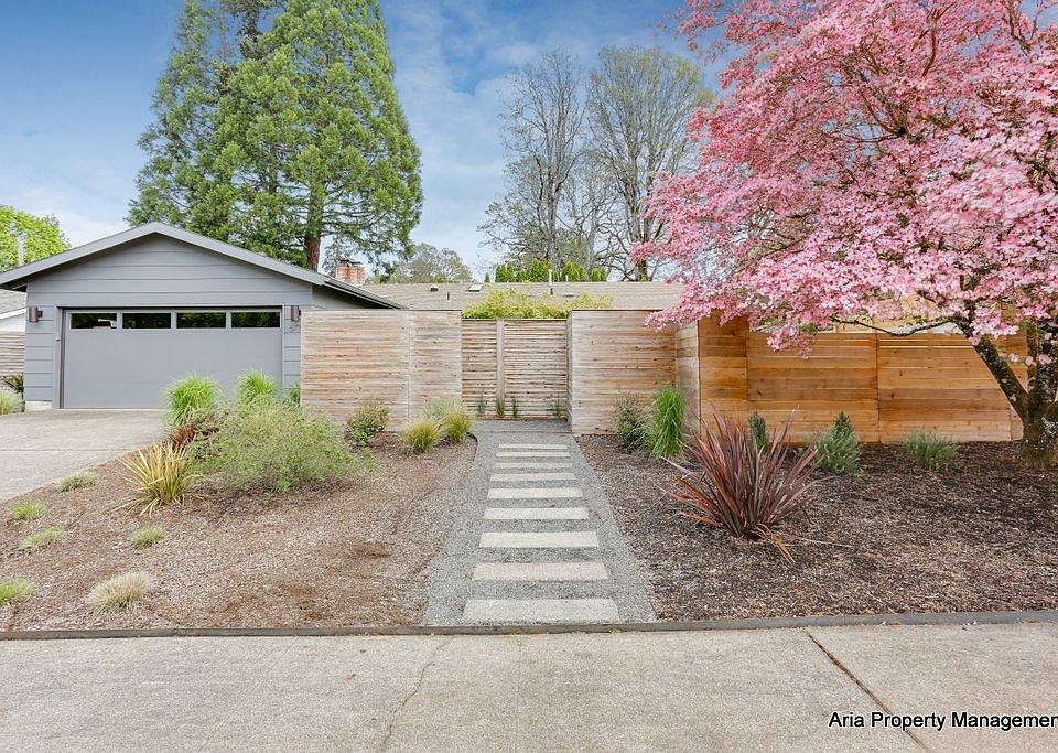 Beautifully Remodeled Mid-Century: This beautifully renovated mid-century modern is nestled in a cozy and quiet neighborhood, tucked away in SW Beaverton in-between Raleigh Hills and Denny Whitford. Your entry starts through a secure, gated entry that greets you with a landscaped courtyard filled with grasses, rosemary and beautiful Japanese maples and onto the skylight filled entry. Walking into this amazing 1600 sqft, 4 bd/2bth, one level home, you will be instantly drawn to the bright feel and modern lines. The open design of the living/dining has a wall of glass with a cozy fireplace and views to the patio that is both private and great for outdoor entertaining, complete with a lounge area and Dacor professional grade gas grill. The living room flows into the open dining area, leading to the modern chef's kitchen/family room combination with a fireplace, white oak soft-close cabinetry, quartz counter tops and SS Kitchen-Aid appliances and a 6-burner professional grade Dacor cook top with griddle. Hands down the coziest room in the house for those early winter morning coffees by the fire! Every room in the house is filled with light and custom closets for ample space. The floorplan allows for the choice of a 4 full bedroom layout or to keep the 4th bedroom as a walk-in closet for those that need a little extra room for all those shoes. All bathrooms are beautifully remodeled and the Primary ensuite bath is gorgeous with a rain shower. Since working from home is the new norm, additional technology includes: Dual Band Gigabit wireless Internet router and ethernet-hub home-run with HDMI outlets. Other great features included are: Fully fenced in yard with beautiful outdoor lighting-professionally maintained landscaping is included; A/C mini-split; Nest Thermostat; LG washer/dryer; 2 car garage with epoxy floors, pantry, mini fridge, wall-mounted storage steel shelving and cabinetry. Location is centrally located for quick access to: Trader Joes, New Seasons, Uwajimaya and Multnomah Village, as well as Fanno Creek Trail and Red Tail Golf Center. Easy freeway access and short commute to Nike, Intel, downtown Portland and Portland Schools - Jesuit High and Raleigh Hills schools. No Smoking allowed.