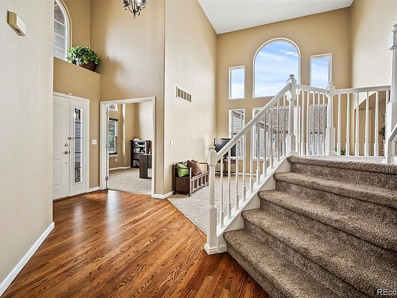 Experience luxury living in this breathtaking 5-bedroom, 5-bathroom residence, complete with an office for optimal productivity. Entertain guests in style with a formal dining room, a spacious great room, beautifully updated kitchen and a large family room complete with a gas fireplace. Natural sunlight floods the home through numerous windows, creating a warm and inviting ambiance. Retreat to the primary bedroom featuring a 5-piece bath, while another bedroom upstairs enjoys the convenience of an en-suite bathroom. Two additional bedrooms upstairs share a Jack and Jill bathroom, offering privacy and functionality. The partially finished basement hosts an additional bedroom and bathroom and offers a versatile space perfect for gaming, hosting gatherings, or additional living. Outside, the stunning landscaped front and backyards showcase mature foliage, while the south-facing backyard ensures that Colorado sun all year round. Enjoy direct backyard access to the popular St Vrain walking path, linking to parks, schools, and the library, a true haven for outdoor enthusiasts and a highlight of the annual St Vrain Ranch Christmas walk.