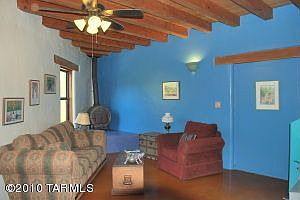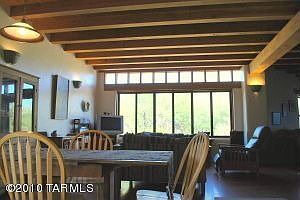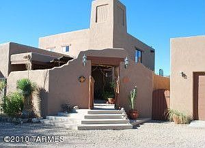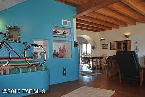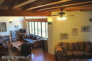 Very quiet, private, home backs to tucson mountain park with an unobstructed view of golden gate mountain. Greatroom with vaulted beam ceilings, color-infused scored concrete floors, cast iron stove & clerestory windows frame the mountain views. Covered entry courtyard with sparkling fountain is wonderful for your morning coffee. The rear porch/deck is a perfect place to enjoy the evening sunsets.