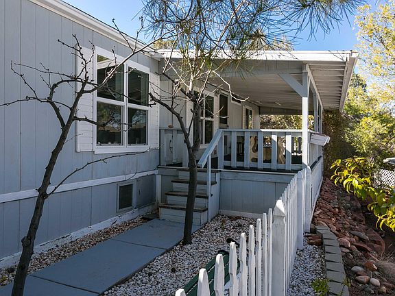 Split floor plan, newly remodeled, open living, dining, kitchen design all with Red Rock views in Sedona Shadows, a 55+ community. Close to the amenities that West Sedona offers. Common Area clubhouse with pool. This lot has some of the best views in all of Sedona Shadows. See attached doc's for park rules and regulations. Current Lot Rent paid to Sedona Shadows $1,102.75, per month, subject to change. This offering is for the Mfg. Home only.