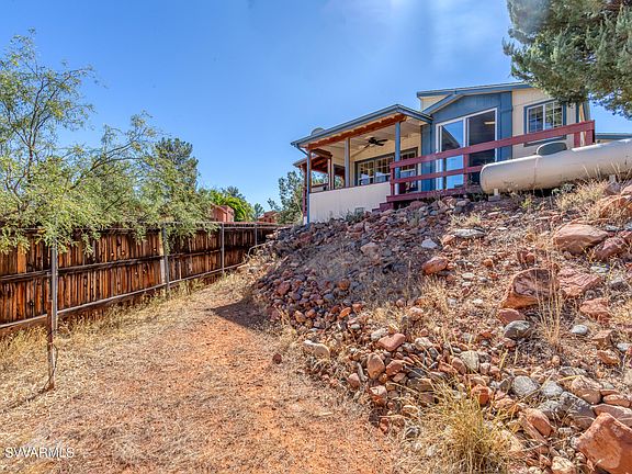 Lovely newer home with some of the best VIEWS in Sedona Shadows, a 55+ Mfg Home with pool, hot tub and fitness center. Access to hiking trails within walking distance. Where you own the home but lease the land. Current rent approximately $1,400 per mo. Views are exceptional and unblockable to the North. Duofold blinds, A/C, Washer/Dryer, shop with storage, New sliding door leads from the Kitchen to the out door decks showcasing the the beautiful elevated views. Electric Fireplace in Living Rm and beautiful newer sauna convey.