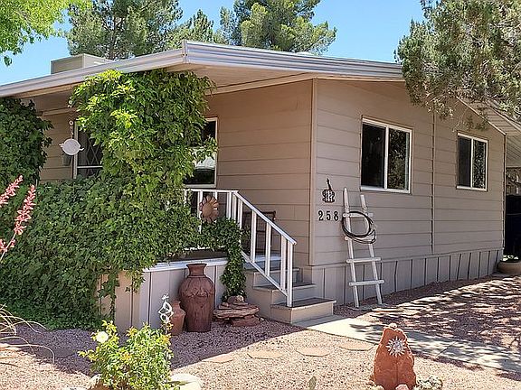 Beautiful, well-maintained, up-graded,move-in-ready home in the red rocks of Sedona! Located in the picturesque, secluded 55+ Sedona Shadows community. Stainless steel Whirlpool stove and refrigerator; dishwasher; Samsung w/d; new garbage disposal; Berber carpet; ceiling fans. Skylights and solar tubes. Dual-pane windows. Lots of storage including pantry and large linen closet. New furnace and two, state-of-the-art MasterCool evaporative coolers that feel like air conditioning. Large, attached storage shed with shelving.. Two-car carport. Covered front porch and covered rear patio with gutters. Separate irrigation systems in front and back to help maintain beautiful, low maintenance landscaping. Hiking trails only a short walk from home anda 10 minute drive to Red Rock State Park. Sedona Shadows community offers many amenities including gym, pool, jacuzzi, pool tables, community room and kitchen. Lot rent is $967 per month. Affordable Sedona living at its best!