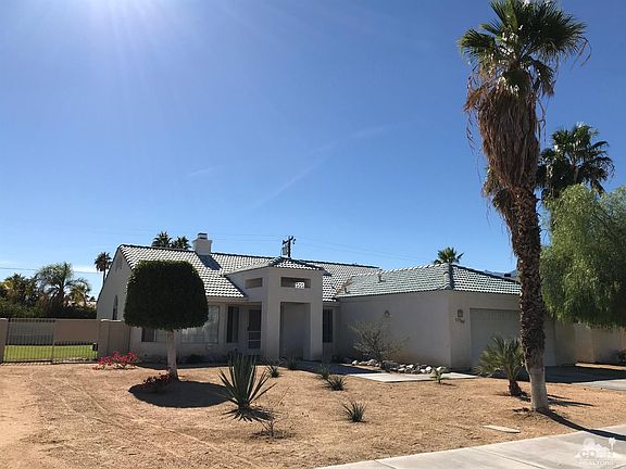 Lovely home in Rio Vista neighborhood.. Across from Desert Princess Hotel. (Landau/Vista Chino area) 4bedroom/2baths. 2 sided fireplace and family room. Blocked wall rear yard with RV entrance. 2 car garage. Washer/dryer/refrigerator included. New indoor paint (walls and doors), Newer air/furnace/water heater (2014). Dishwasher (2015). Newer front desert lanscaping. Seller to provide $3,000.00 credit towards new carpet