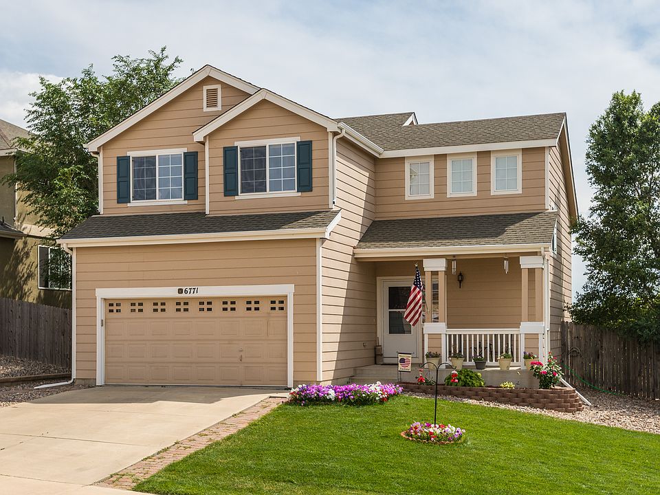 Cozy 2 story home located in Fountain* Great area only minutes away from Fort Carson, Fountain Regional Park, and shopping amenities at Mesa Ridge Pkwy* This home has an attached 2 car garage which you can access the home through the main level laundry/mud room* Eat in kitchen has Stainless Steel Appliances and a pantry off the Dining nook* Dining room does walkout to a cozy wood deck where you can see part of the Front Range* The Living/Great room has tall vaulted ceilings making it feel very spacious* Heading upstairs you have 3 bedrooms* The Master adjoins to a walk in closet and full bath* There is another full bath in the upper level hallway as well* The basement is currently unfinished which makes perfect space for storage or possible future expansion*
