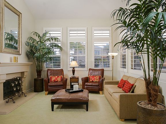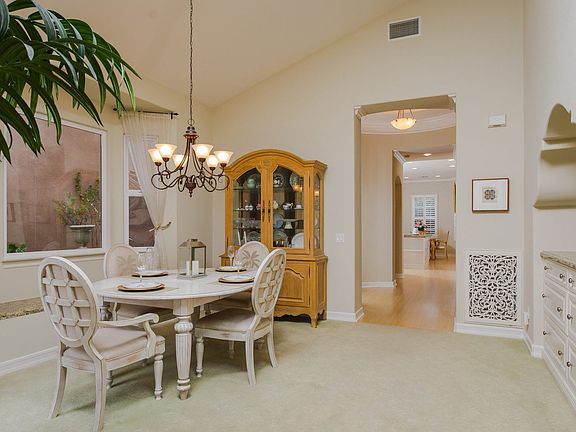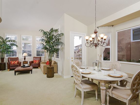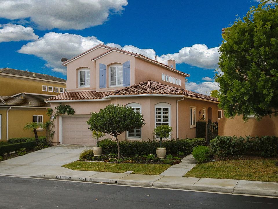 Elegant home in the private gated community of Cristalla offering a view of the Pacific Ocean. Large master suite on the main level with luxurious tile bath/dressing area. Designer interior with high ceilings, rich 2-tone paint, plantation shutters, crown molding, wood & ceramic tile floors & rich carpeting. Island kitchen with white cabinets, tile/granite countertops and breakfast nook. Stylish design with dramatic arches and art niches. Private yard with patio with built-in BBQ.
