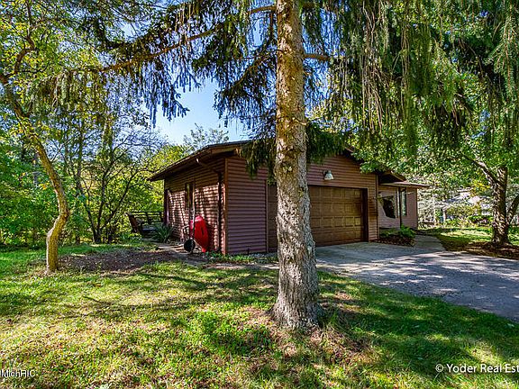 Sited amidst mature treescapes, discover a 3 bed 2.5 bath home designed for entertaining and casual living. Mere moments from Rockford High School and restaurants along the Grand River, this property is a stunning example of idyllic living. The airy interior is an expression of peacefulness, executed with clean lines and vaulted ceilings. Welcome the fall season with guests beside a robust brick fireplace, savoring festive aromas wafting from an elegant and open kitchen. A finished lower level is a delightfully cozy retreat, while a spacious main floor master features a sliding door to the wrap-around back deck. Savor your morning coffee here, overlooking the nearly 2 acres of wooded serenity.