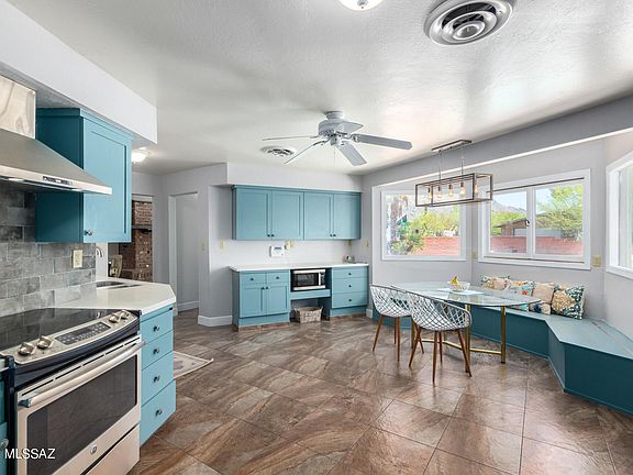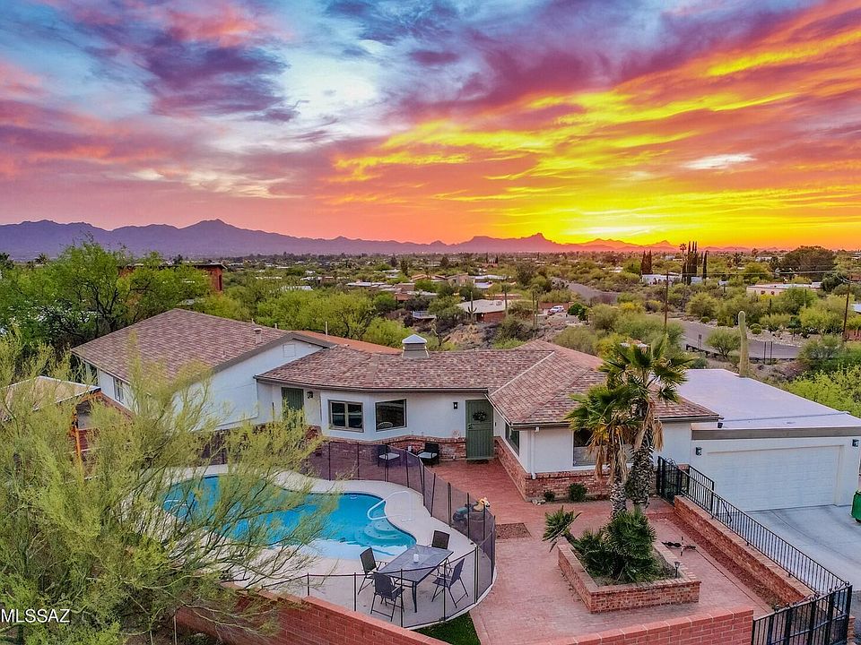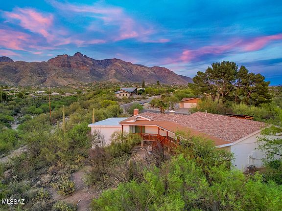 Must see property with Mountain and City Views!! Rare 4 bedroom, 2 1/2 bath situated in the heart of the desirable Catalina Foothills. Updated throughout, large open kitchen, tons of storage with recently redone cabinets, built in breakfast nook including bay windows overlooking the pool and gazebo. Open living/dining with wood floors and fireplace. Back porch that runs the length of the home for stunning views.